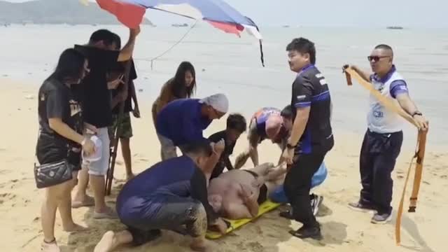 Footage shows the dental veneers coming loose in Kamolwan's mouth mid-sentence on March 25. She was saying her name and title but slurred her words as her teeth blocked her voice.