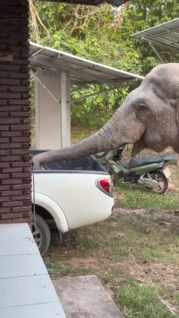 Footage shows the jumbo named Phlai Diaw Lap searching the back of the vehicle while it was parked in a resident's home in Nakhon Ratchasima province on March 29. 2026-04-02 13:12:31