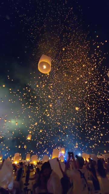 Holidaymakers and locals in white outfits gathered to release the lanterns skyward, each one carrying a wish for good luck and prosperity in Chiang Mai, Thailand. 2026-04-07 21:53:53
