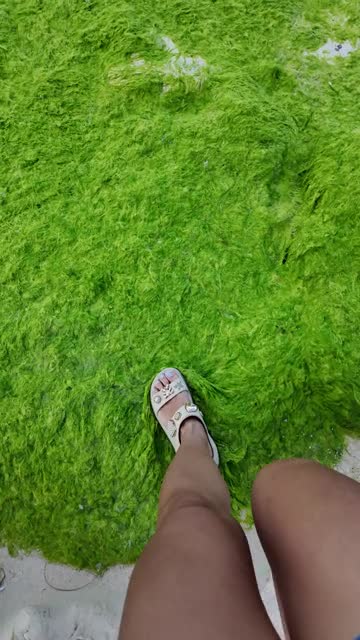 MJ Aoki lost her footing after stepping onto the slick, vibrant green algae blanketing the sand at Station 2, Boracay Island, in Aklan, the Philippines. 2026-04-07 21:54:30