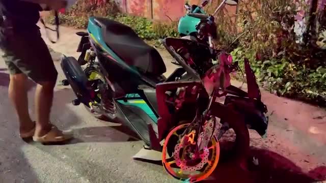 Footage shows the scooter suddenly igniting from underneath while travelling along a road in Shanxi, China, with the two men jumping clear to save themselves. 2026-04-06 21:01:04