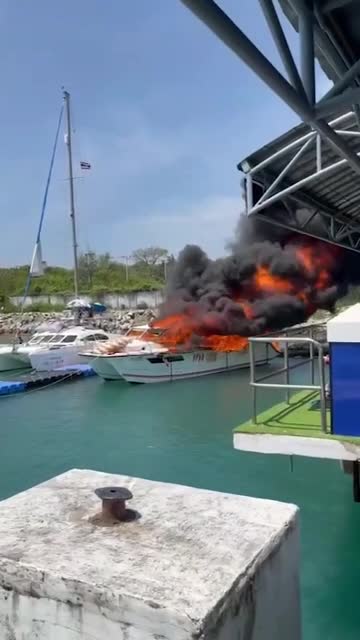 Flames engulfed the vessel named Tequila as it was undergoing engine repairs at a pier in Ao Makham Bay on the holiday island of Phuket. 2026-04-06 16:17:35