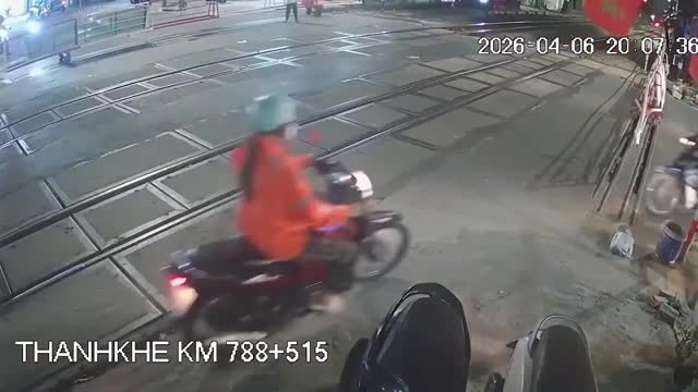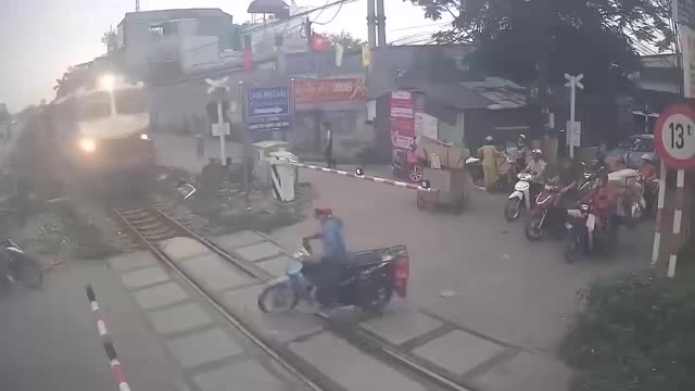 The motorist appeared unaware of the oncoming locomotive as he continued moving, despite other vehicles being stopped behind him in Hanoi, Vietnam. 2026-04-07 21:35:55