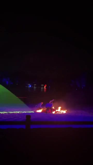 Footage shows the woman in a red gown sitting on the sand as two men set alight a large ring attached to the bottom of her dress at a beach in Jiangsu, China. 2026-04-07 21:36:57