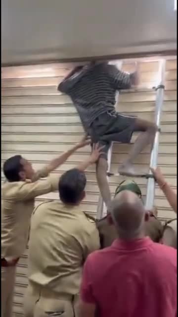 The suspect reportedly entered a cardiologist's clinic and became trapped in the metal shutter after attempting to force it open late at night in Ghaziabad, India. 2026-04-14 19:03:12