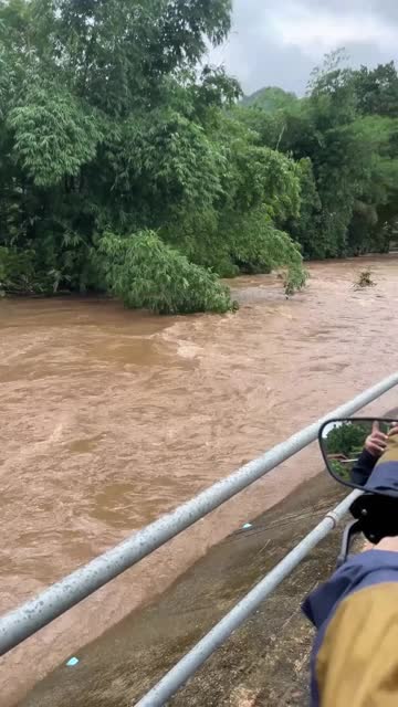 CCTV footage shows the resident stepping on the wooden structure when it crumbled and threw him into the water in Surat Thani province, Thailand on July 18.