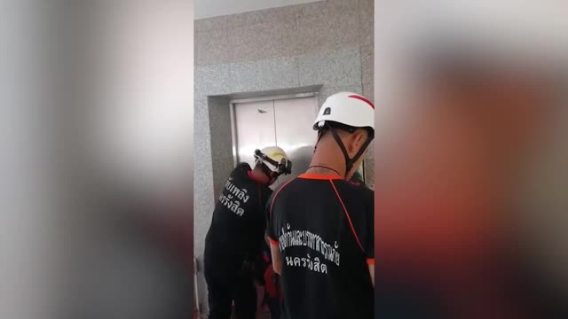 The 13 teachers with pupils of Duangkamon School were on their way down the building when it stopped before it could reach the floor in Pathum Thani province on July 24. 2024-07-26 16:43:24