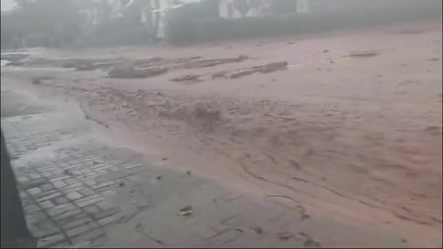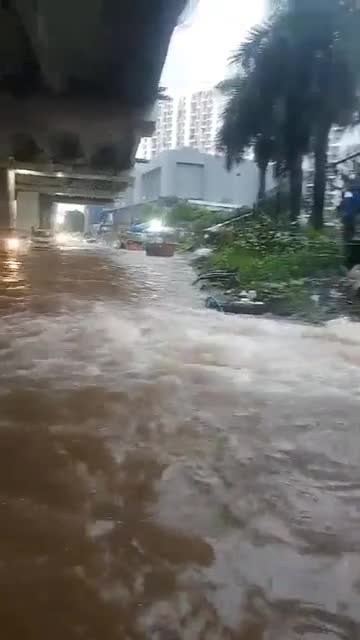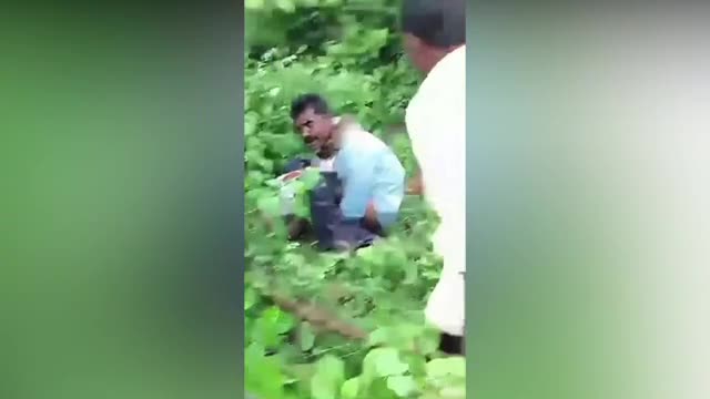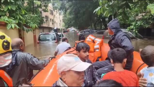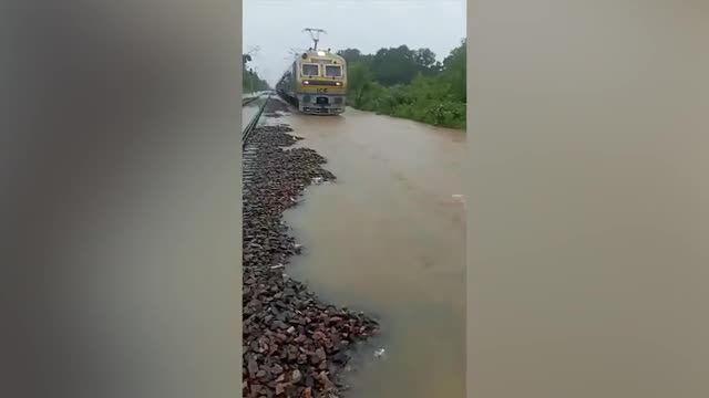 Footage shows train employees walking through leg-deep muddy waters to assist the vehicle in navigating the railroad in Katni, Madhya Pradesh, on July 25.