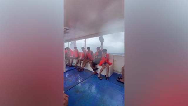 Footage shows a man pulling the wooden structure against strong winds with the help of neighbours in a slum area in Manila on July 22. 2024-07-23 16:24:28