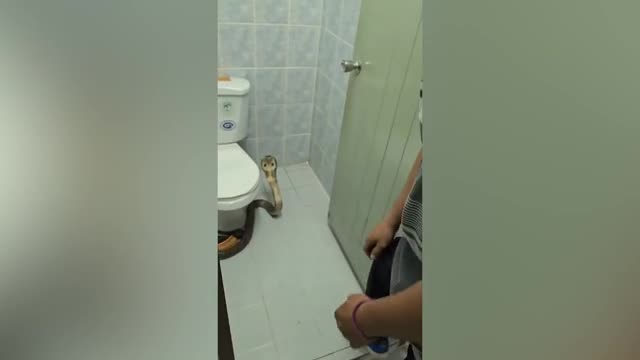 Footage shows the deadly serpent raising its head as it squared off against snake wrangler Chokchai Chanawirut inside the family's bathroom in Nonthaburi province on July 22. 2024-07-23 18:20:56
