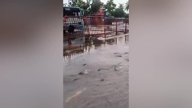 Footage shows wildlife rangers from the Ministry of Environment and Forests digging up the earth with an excavator to create a path on which the distressed jumbo could walk in Karnataka, India, on July 18. 2024-07-22 13:28:43