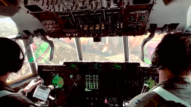 Footage shows the MAFFS (Modular Airborne Fire Fighting System) equipped C-130J of the California Air National Guard approaching the engulfed forest in Tulare Country. The personnel was from the 115th Airlift Squadron at Channel Islands Air National Guard Station.