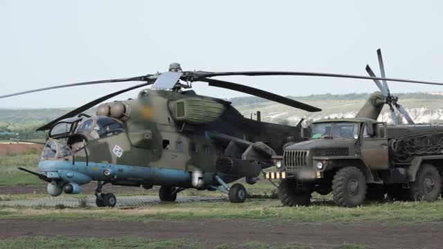 Theremarkable clip shows a Russian Mi-35M military helicopter successfully targeting aUkrainian stronghold and a group of soldiers. 2024-07-20 10:06:31