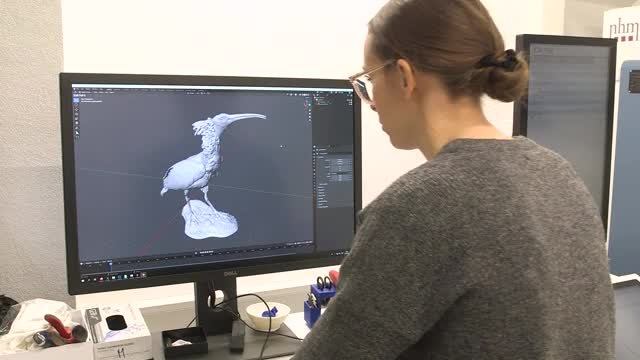 Footage shows a Natural History Museum Vienna (NHM) officer making bird dummies using the machine. The birds were installed in a natural rock niche in Uberlingen to aid in the bird's reintroduction to the area after being extinct in Europe. 2024-07-20 09:40:40