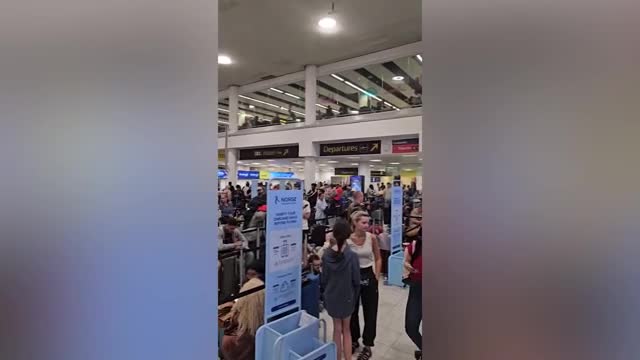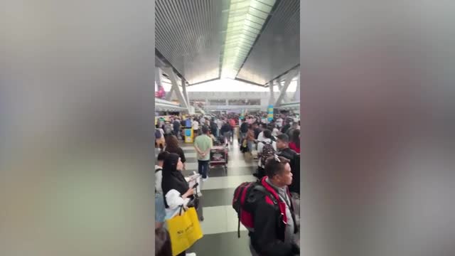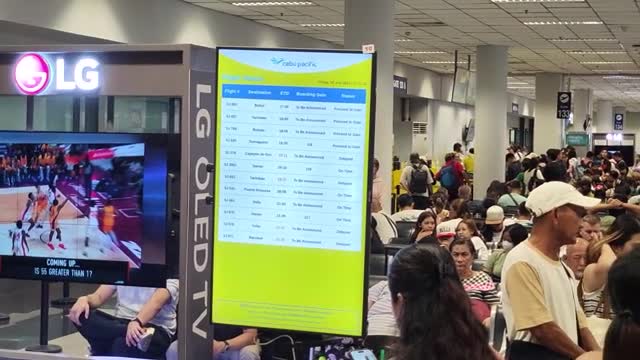 Footage shows crowds of people waiting as staff of local airlines Cebu Pacific manually processed boarding at the Ninoy Aquino International Airport on July 19. 2024-07-19 17:37:53