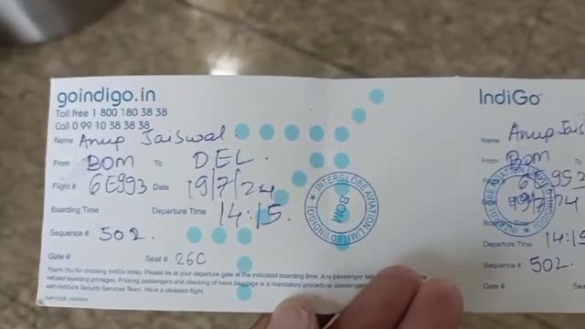 Footage shows flier Anup Jaiswal displaying his manually printed pass for his IndiGo flight from the Chhatrapati Shivaji Maharaj International Airport in Mumbai to Delhi in the north. 2024-07-19 17:00:31