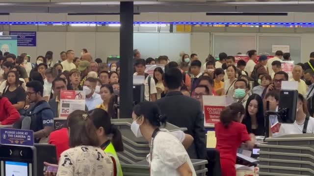 Long queues formed at the Thai Air Asia counters, with the company saying its 'core reservation and check-in system are impacted by a global IT issue affecting airlines worldwide'. 2024-07-19 19:08:21