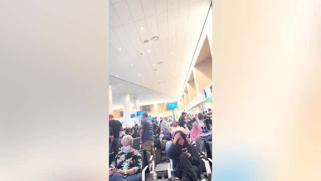 Footage shows worried flier Scott Sanderson walking through the Seattle–Tacoma International Airport for his flight to Ohio. He said passengers were forced from their plane before it could take off. 2024-07-19 17:29:43