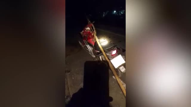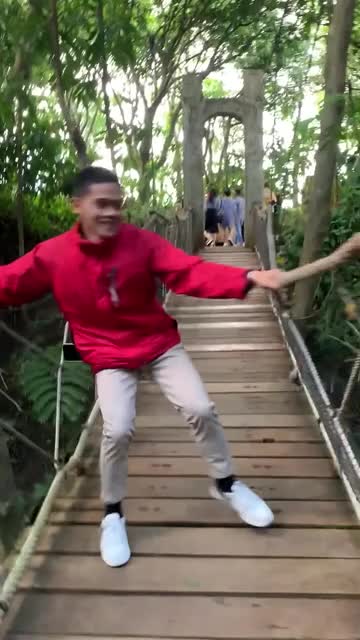 Footage shows Trovador Cassura swinging the bridge in Batangas to scare a friend afraid of heights – only for his phone to slip from his pocket on November 27.