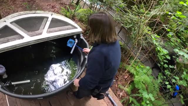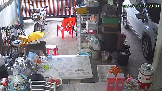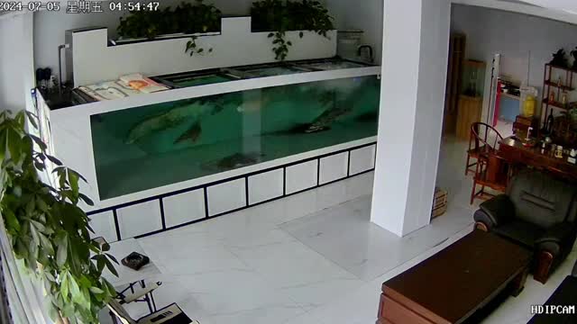 This is a moment a large Arapaima being kept in a tiny tank commits suicide by smashing into the top of its aquarium causing an electrical shock and then jumps out onto the floor.