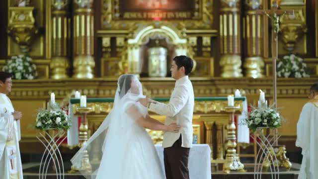 April Sison, 31, said she was delighted to marry her boyfriend of six years and childhood sweetheart Bar Sison, 30, but could not control her giggles when the priest asked them to do the ceremonial kiss in Puerto Princesa City, the Philippines, on June 22.