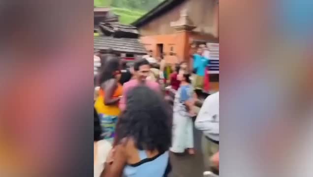 Tourists shocked as tree falls onto temple building in Bali