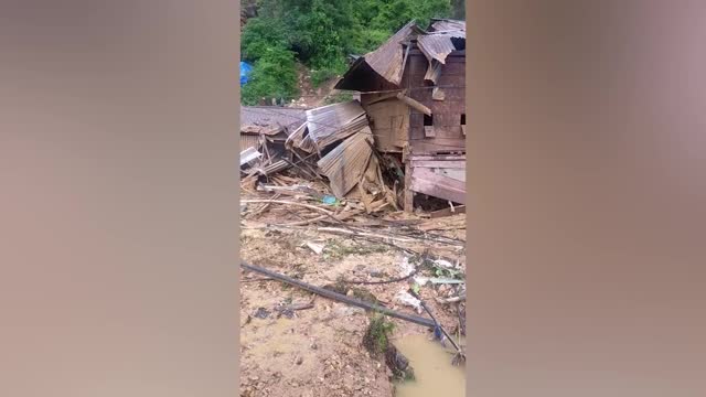 Two cars crushed by landslides in Indonesia