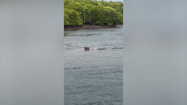 Footage shows the wild animals in a single file following the adult and converging in the middle of the path before moving to the side in Baker County on June 28.