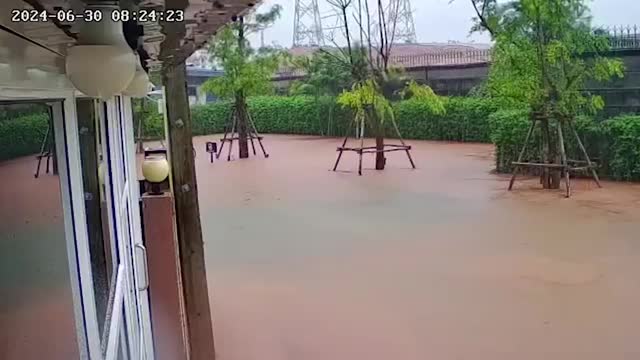 CCTV footage shows the structure giving way from the waist-deep deluge of muddy water pushing against it near the Kamala Beach area of the island on June 30. 2024-07-03 11:15:55
