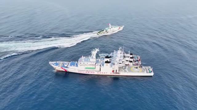 Footage shows the two Chinese vessels circling the Philippine Coast Guard's largest ship, the 97-metre BRP Teresa Magbanua, and three other Philippine patrol ships in the contested Escoda Shoal area on July 2. 2024-07-03 11:04:03