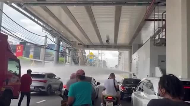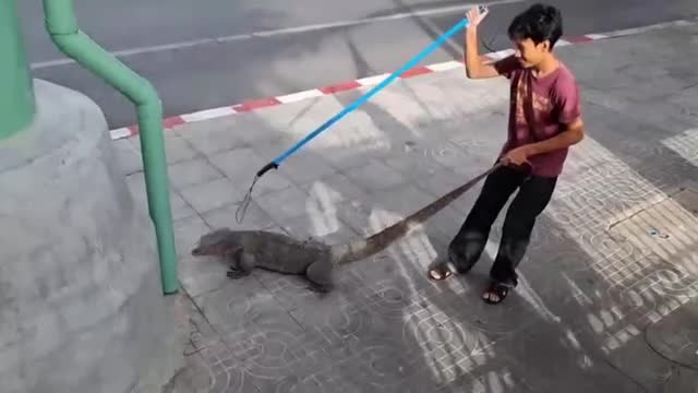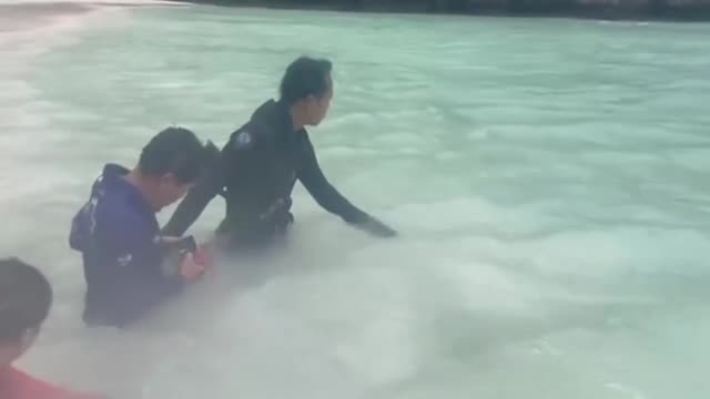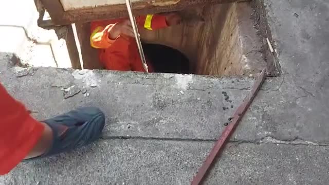 The elderly woman heard the pooch crying underneath the narrow space from her home and went to save it with a hoe in Sakhon Nakhon province, Thailand, on June 5.