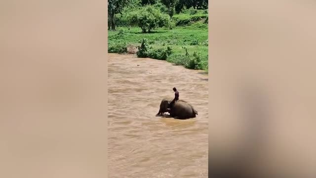 The small white dog was spotted on top of the black pooch while they strolled through the neighbourhood in Shandong, China, on May 15.