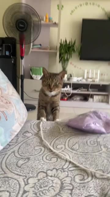 Li Fugui, the four-year-old Persian cat, was playing underneath the bed when it accidentally trapped itself on the plastic chair in Zhejiang, China, on May 31.
