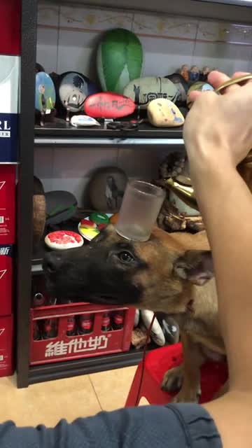Er Huo, the talented seven-month-old Belgian Malinois, sat still like a coffee table as it stabilised the teacup filled with tea in Huizhou, Guangdong, China on June 3.