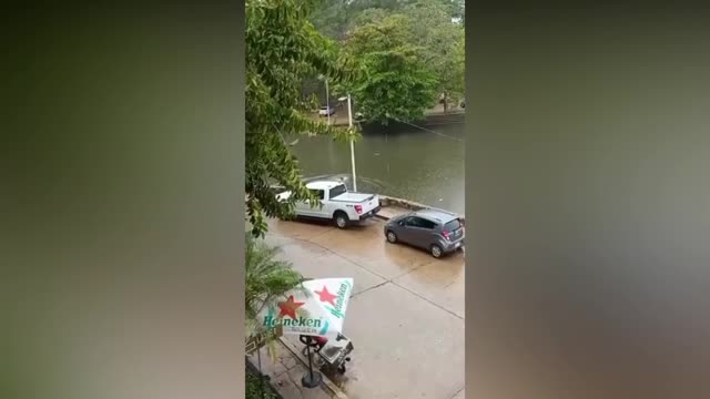 The incident took place at the Las Ilusiones lagoon, in Villahermosa, Tabasco, Mexico, on 16th June, with the footage showing the man swimming in the lagoon in the rain while people film him from across the street.