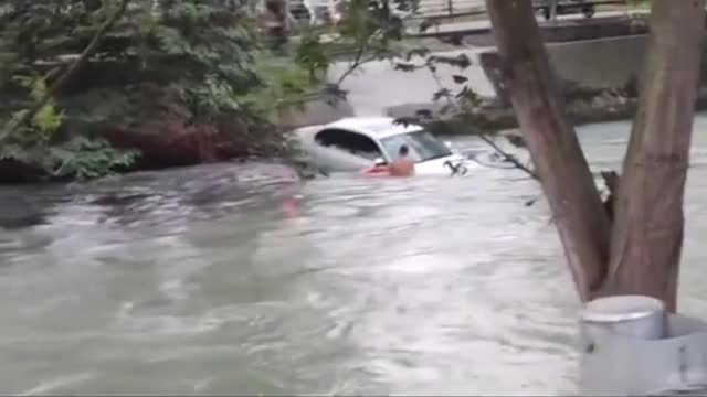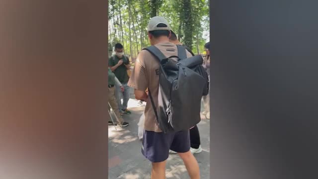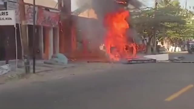 Footage shows the vehicle engulfed in the raging fire, with the flames also burning the electric cables overhead in the Bangkalan Regency of East Java on June 18 afternoon.
