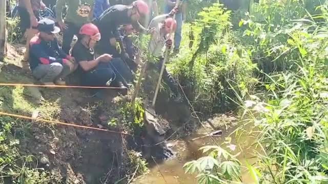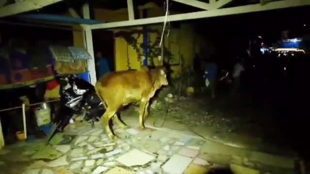 Officers were called to assist when a cow, which was about to be sacrificed for Eid celebrations, came loose and ran away before it plunged into the hole in Makassar City, Indonesia on June 16.