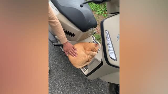 Footage shows the stray feline being woken by the motorcycle rider as it dozed off on the vehicle in Nakhon Ratchasima province, Thailand on May 15. 2024-06-13 13:52:54