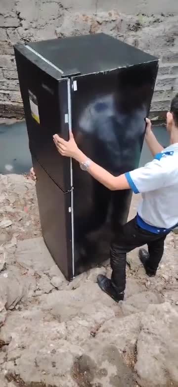 Geramil Gaela and his colleagues had to bring the 6ft-tall appliance to an address which they couldn't find at first and turned out to be a home in the slums in Manila, the Philippines. 2024-06-13 13:51:58