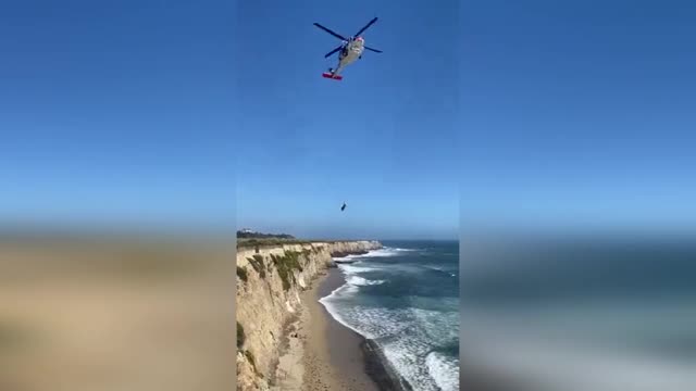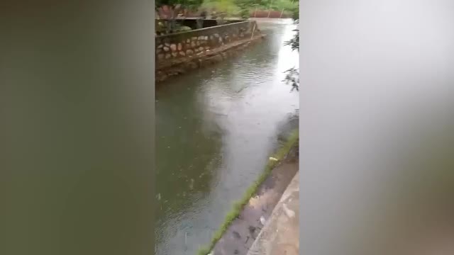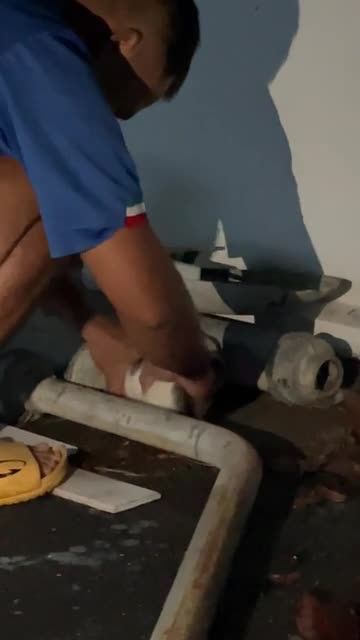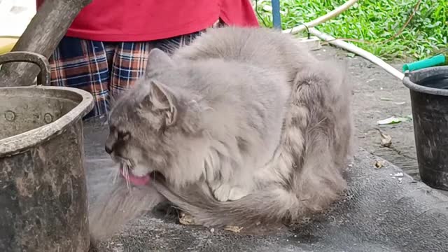 Footage shows the good Samaritan trying to extract the moggy from an object with a narrow 10cm diameter after it had been cut off the main structure in Phrae province, Thailand, on December 15.