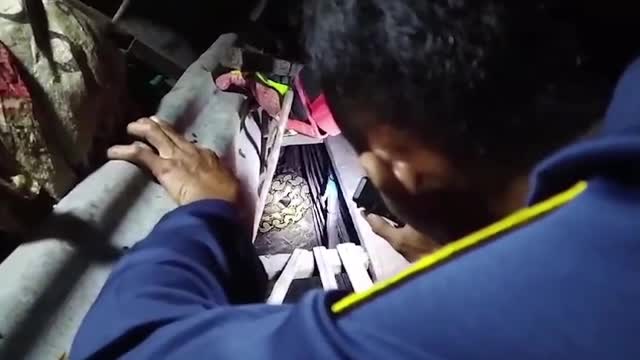 The 16ft-long python was coiled around the front portion of the scooter as residents tried to lure it away with wooden poles in South Sulawesi on June 8. 2024-06-10 13:58:19