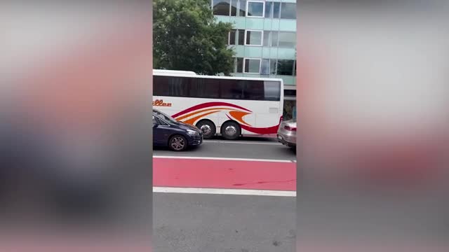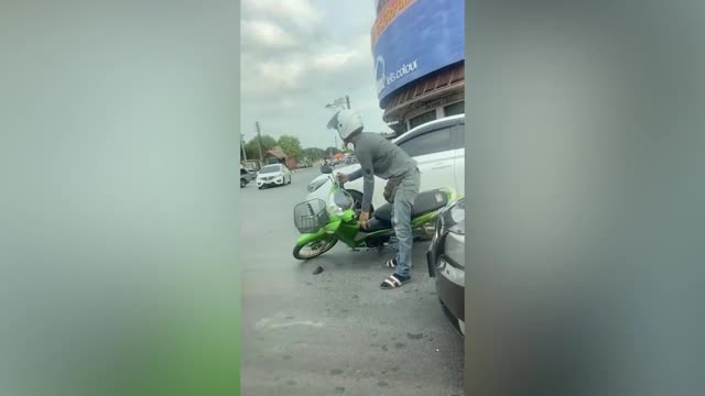 The rogue primate pounced on Krissada Kamthet, 37, while he was waiting at an intersection. It jumped on the back of his two-wheeler to snatch his fruit in Lopburi province, Thailand on June 1. 2024-06-07 16:22:25