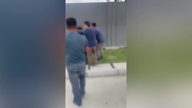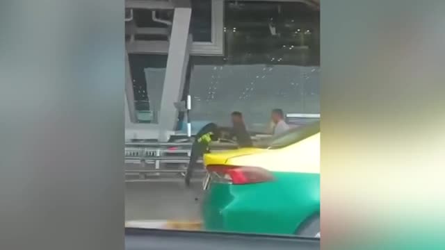 Footage shows one officer being battered by another as a third worker tried in vain to stop the row in front of the departures terminal at the Suvarnabhumi International Airport on June 4. 2024-06-07 13:28:52