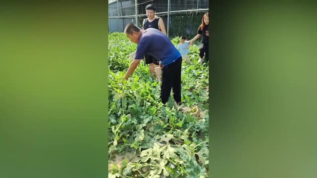 This is the moment aChinese melon farmer checking out his crop discovers a massive melon hidden underneath thebranches to the obvious delight of his son. 2024-06-03 14:10:45