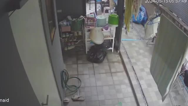 The house owner Russarin Chusinkawiphat said they accidentally left the gas valve open in the kitchen and was shocked when they heard the loud blast at the back of the property in Bangkok, Thailand on May 15.