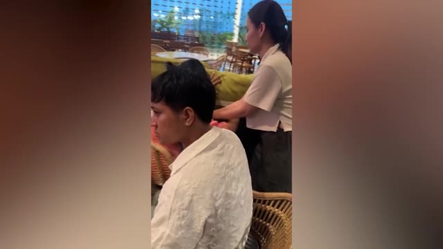 Footage shows the feline circling around the woman on the mat and trying to mimic her movements in Bangkok, Thailand on October 2.