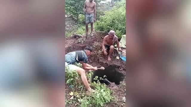 The animal was left in an overgrown wasteland to graze but wandered away and fell into the sludge-filled hole in Astorga Town in Davao del Sur province on May 20.