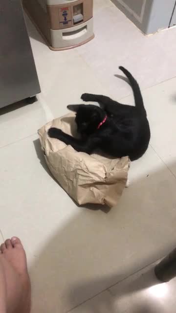 Footage shows the black feline named Diego trying to find an opening on the bag before his friend Oreo poked his head out in Olongapo City, the Philippines on January 10. 2024-05-17 18:32:57
