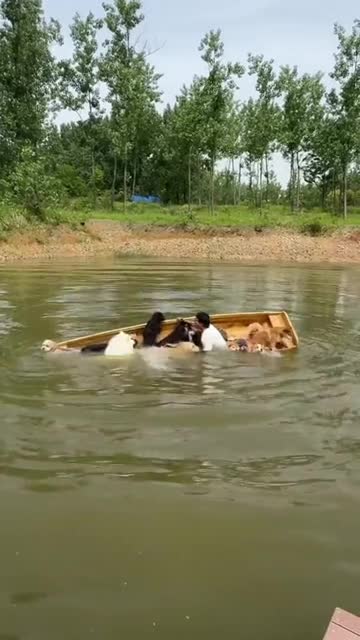 Pet dogs capsize in rowing boat in China