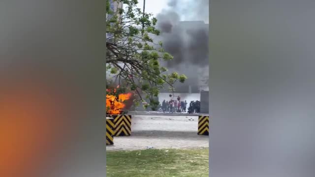 Crowds gathered at the gate of parliament and pushed through the railings. Others breached the defences and set alight parts of the building amid anger over tax rises.